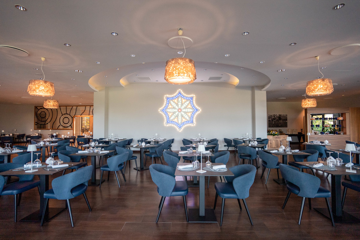 Il ristorante del resort accoglie gli ospiti in un ambiente elegante, offrendo una varietà di piatti che soddisfano anche diete particolari e intolleranze alimentari su richiesta. Gli ospiti possono godere di pasti raffinati che riflettono la ricchezza culinaria della regione, con un servizio attento che garantisce un'esperienza gastronomica indimenticabile.
