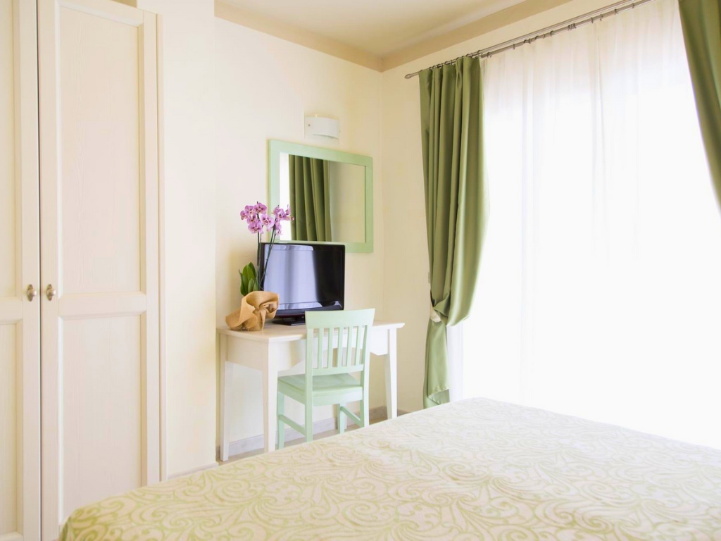 Camera Superior (min.2 - max. 4 persone) Camera doppia RINNOVATA di circa 18 mq o Camera tripla/quadrupla RINNOVATA di circa 18 mq con divano letto a castello, con TV, telefono, aria condizionata, asciugacapelli, cassaforte, minibar (riempimento su richiesta a pagamento). Sono dotate tutte di doccia. Con balcone/terrazza. Possibilità di camere vista mare con supplemento (la tipologia “Superior” non è prevista vista mare). Suite Lato Piscina (min.2- max. 4 persone) Camera di 30 mq, composta da due ambienti separati, 1 camera matrimoniale ed 1 soggiorno con divano letto a castello. Dotata di TV, aria condizionata, cassaforte, minibar (riempimento su richiesta a pagamento). Posizione vicino alla piscina.