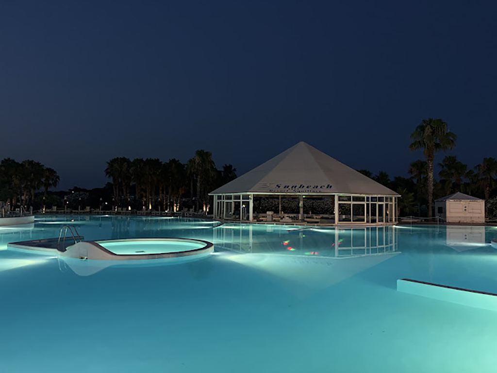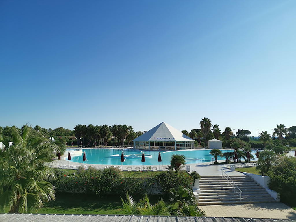 Servizi, attrezzature e sport: Ristorante centrale climatizzato con grande dehors per consumare i pasti anche all’aperto, Reception 24h, Hall, 2 grandi piscine attrezzate (la “Cassiodoro” che ospita tutte le attività di intrattenimento con spazi per adulti e per bambini con postazioni fino ad esaurimento e la “Laguna” per chi ama la tranquillità), Bar centrale, bar piscina e bar spiaggia, Anfiteatro, Discoteca e piano bar, Sala congressi, Servizio di lavanderia, 2 campi da tennis, 1 campo polivalente, 1 campo da calcetto, 2 campi da bocce, Volley, Beach volley, campi da Pickleball, Wi-fi gratuito nelle aree comuni, Parcheggio esterno non custodito, disponibile parcheggio interno a pagamento, Bazar, Nolo teli mare e passeggini (da segnalare al momento della prenotazione), Possibilità di noleggio autovetture, Ricco programma di escursioni.