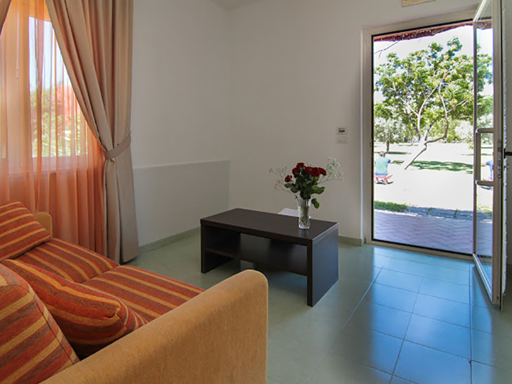 Suite Garden (fino a 5 posti letto, composte da camera matrimoniale e soggiorno con divano letto matrimoniale o letto a castello, patio o terrazza attrezzata)