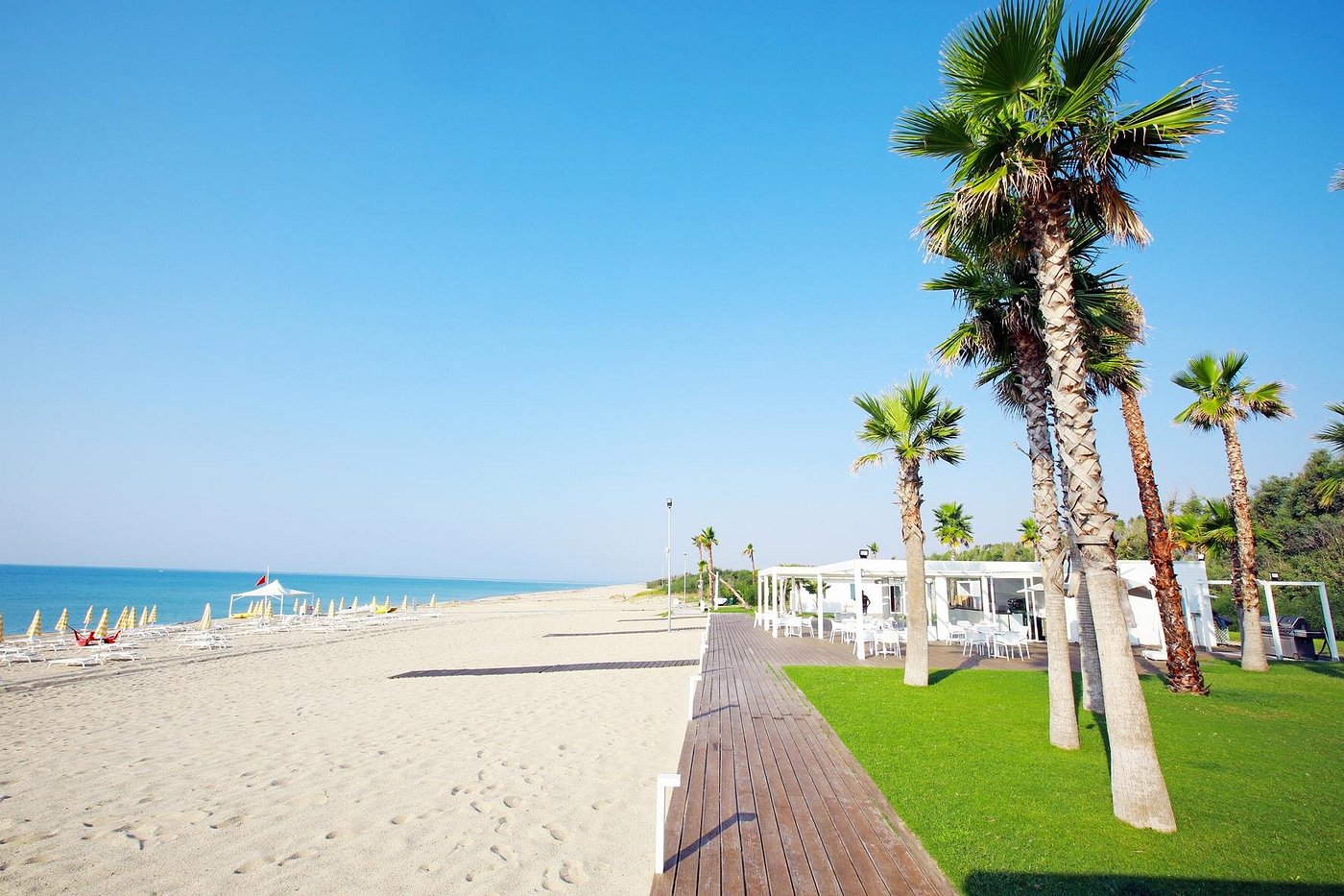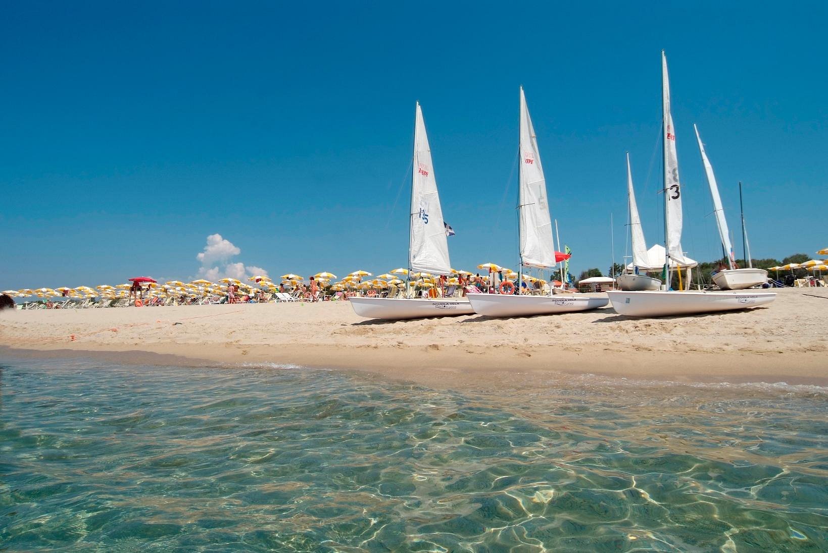 Spiaggia: La spiaggia privata del resort, caratterizzata da sabbia bianca e fine, dista circa 400 metri ed e' raggiungibile a piedi o tramite un trenino-navetta elettrico a orari prestabiliti. Il mare cristallino offre una vista panoramica sulla Fortezza Aragonese di Le Castella e sulla Riserva Naturale Marina di Isola Capo Rizzuto, rendendo questo tratto di costa uno dei piu' suggestivi della zona.