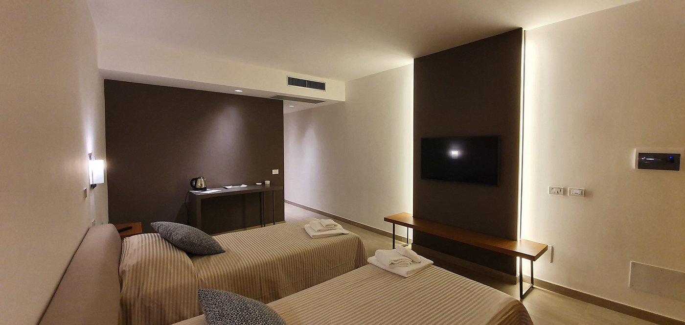 Family Room: Accomodano da 2 a 5 persone, composte da due ambienti separati da una porta scorrevole, bagno e due TV. Situate per la maggior parte al primo piano dei corpi laterali, in minima parte nel corpo centrale.