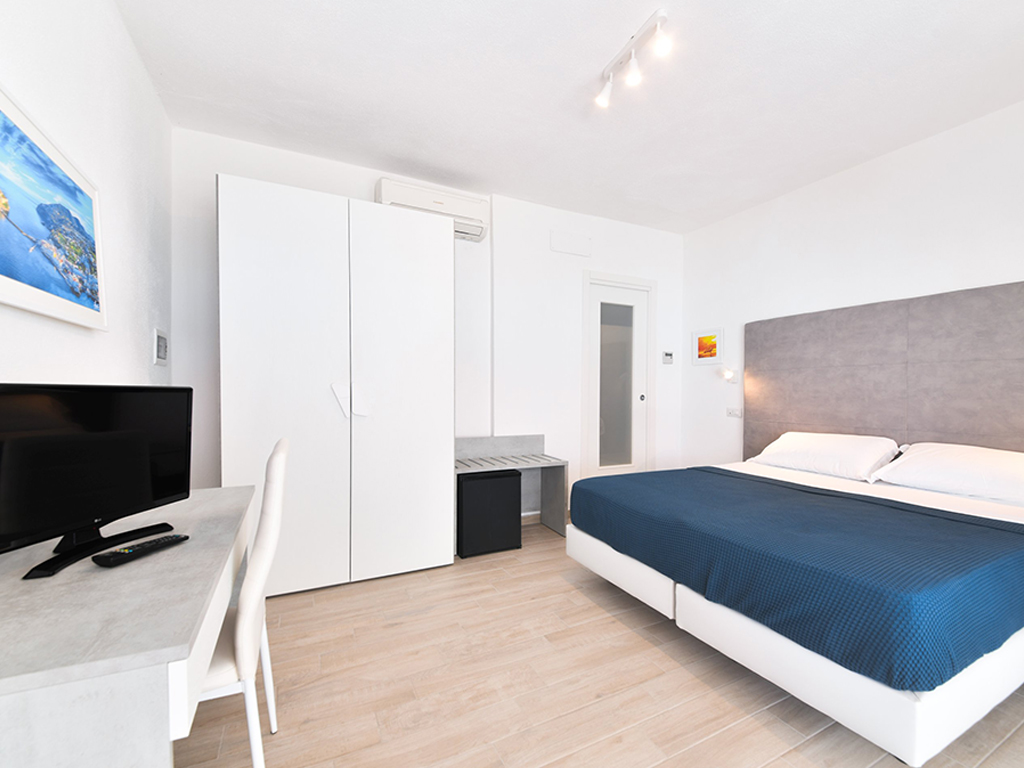 - Sistemazione in camera matrimoniale/doppia Standard con servizi privati, asciugacapelli, prodotti da bagno in omaggio, aria condizionata, riscaldamento, WI-FI gratuito, TV SAT a schermo piatto, telefono, cassetta di sicurezza e mini frigo (vuoto)