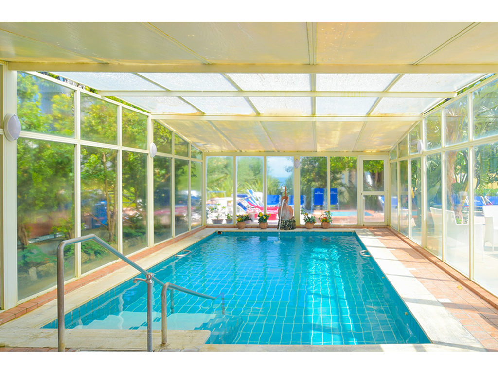 PISCINA COPERTA vivi il piacere di un bagno rilassante in ogni stagione, senza preoccuparti delle condizioni meteo. La nostra piscina interna, riscaldata e dotata di getti idromassaggio, ti offre un'oasi di benessere perfetta per le giornate piu' fresche o di pioggia.