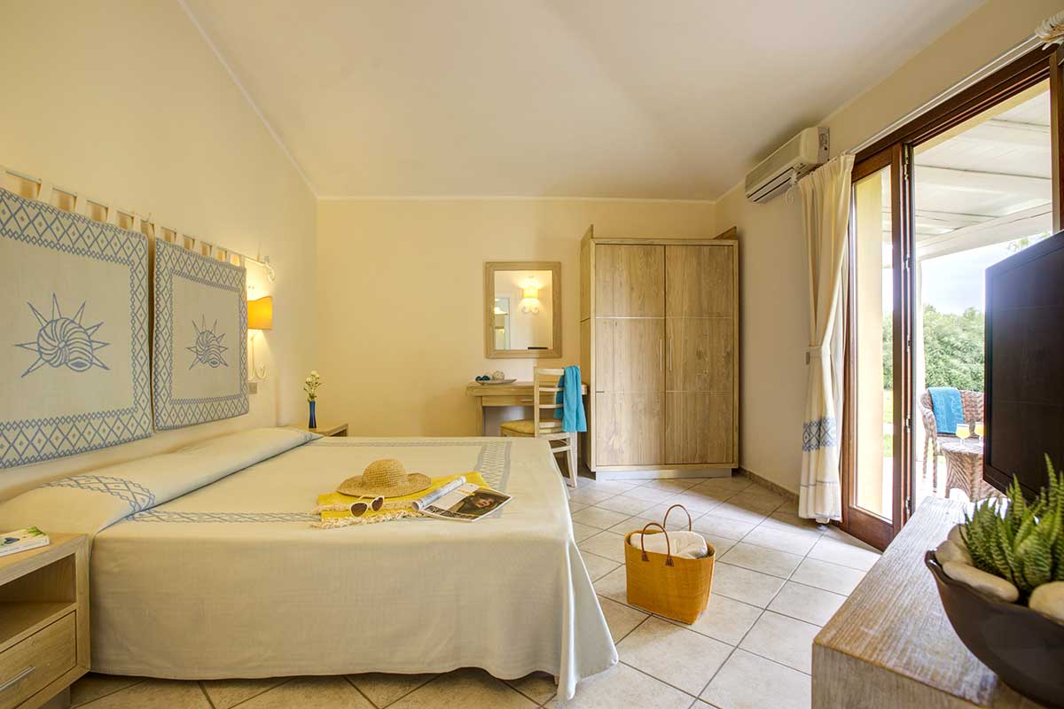 Le camere del Villaggio Cala Fiorita sono il perfetto connubio tra comfort moderno e tradizione locale, grazie al loro arredamento in autentico stile sardo. Situate in graziosi villini a schiera immersi nel verde, si sviluppano tutte al piano terra, offrendo ingressi indipendenti e ampie verande per garantire un’atmosfera accogliente e rilassante. La loro posizione privilegiata consente di essere a pochi passi dalla spiaggia e circondati dalla natura.