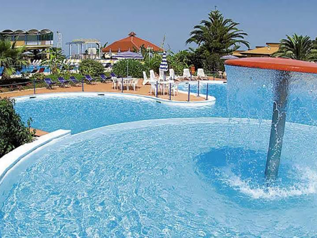 - 2 piscine di cui 1 semi olimpionica ed 1 a forma circolare con zona riservata ai bambini
