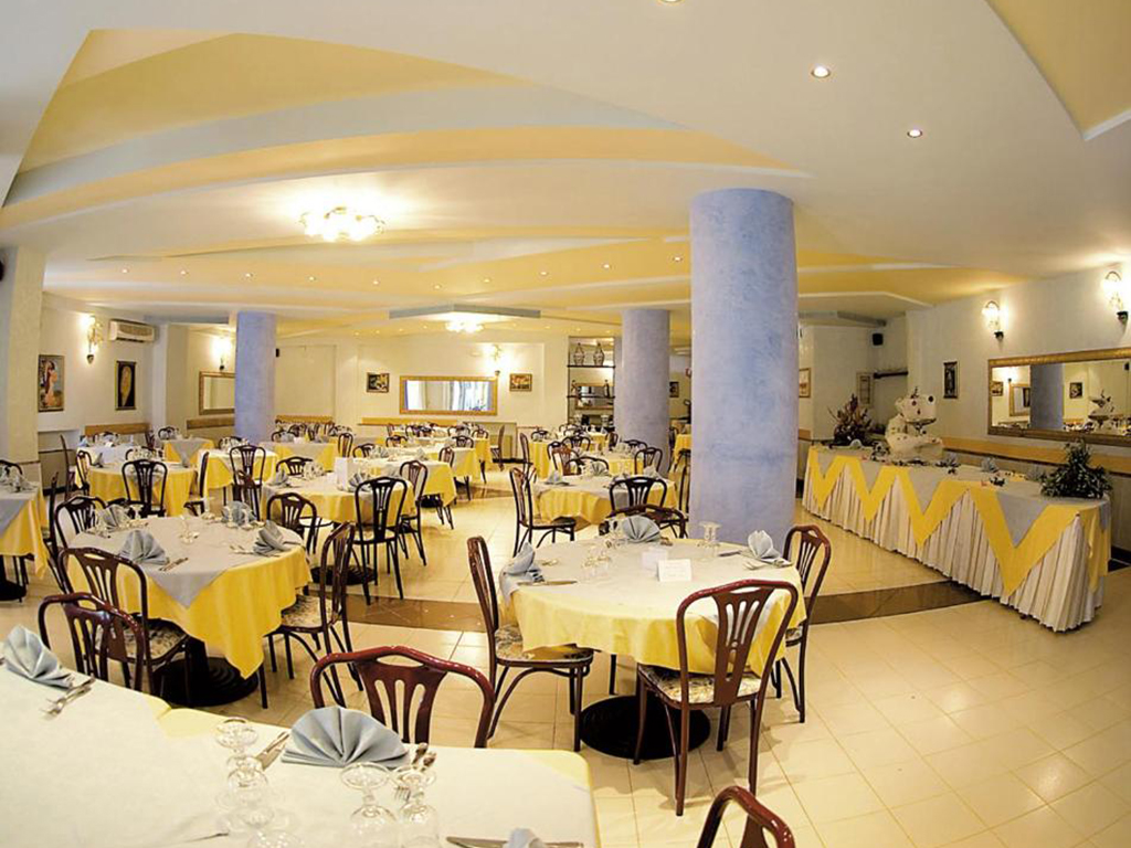 Ristorazione: la prima colazione a buffet prevede un’ampia scelta tra prodotti dolci (croissant, torte, crostate, etc) e salati (pane, formaggio e salumi), yogurt, cereali, frutta sciroppata, marmellatine, miele, e bevande calde e fredde da distribu tori automatici; il pranzo e la cena con variegati antipasti e contorni, specialità gastronomiche nazionali e regionali sono serviti a buffet. Acqua e vino da distributori automatici ai pasti senza limitazione. Durante la settimana una serata a tema con cena a base di specialità tipiche della tradizione regionale allieterà gli ospiti. L’assegnazione dei tavoli resta a discrezione della direzione che cercherà in ogni modo di soddisfare le richieste particolari dei clienti. Intolleranze: per gli ospiti intolleranti al glutine, al lattosio ed alle uova, pur non potendo offrire menu preparati ad hoc, viene loro garantito su richiesta la prima colazione con prodotti base confezionati ed a pranzo e a cena almeno un primo, un secondo e un dolce adatti alle loro intolleranze. In ogni caso disponendo di cucina unica non è garantita l'assenza assoluta di contaminazione per alcun tipo di intolleranza (salvo che per i prodotti confezionati su indicati). Biberoneria: le mamme ed i loro bambini (0/3 anni) al ristorante mezz’ora prima dell’apertura potranno trovare seggioloni ed un menù a scelta con pastine, passati di verdura/legumi/pomodori, brodi vegetali e di carne, fettine di carne, filetti di pesce, prosciutto cotto, latticini, frutta fresca, latte fresco, yogurt, marmellate, the e camomilla. Per coloro che invece vogliono cucinare e preparare direttamente le pappe ai propri bimbi è aperta 24 ore su 24 una biberoneria dotata di angolo cottura con frigo e lavabo, tavoli, sedie, seggioloni, pentole, stoviglie e forno a microonde.