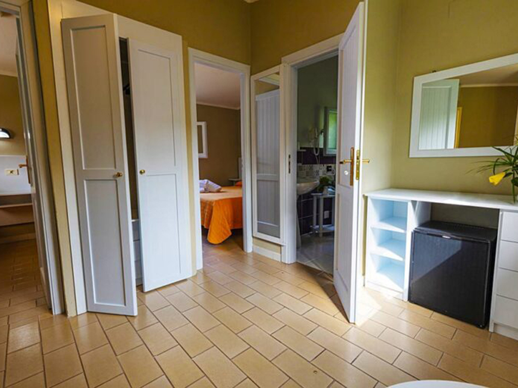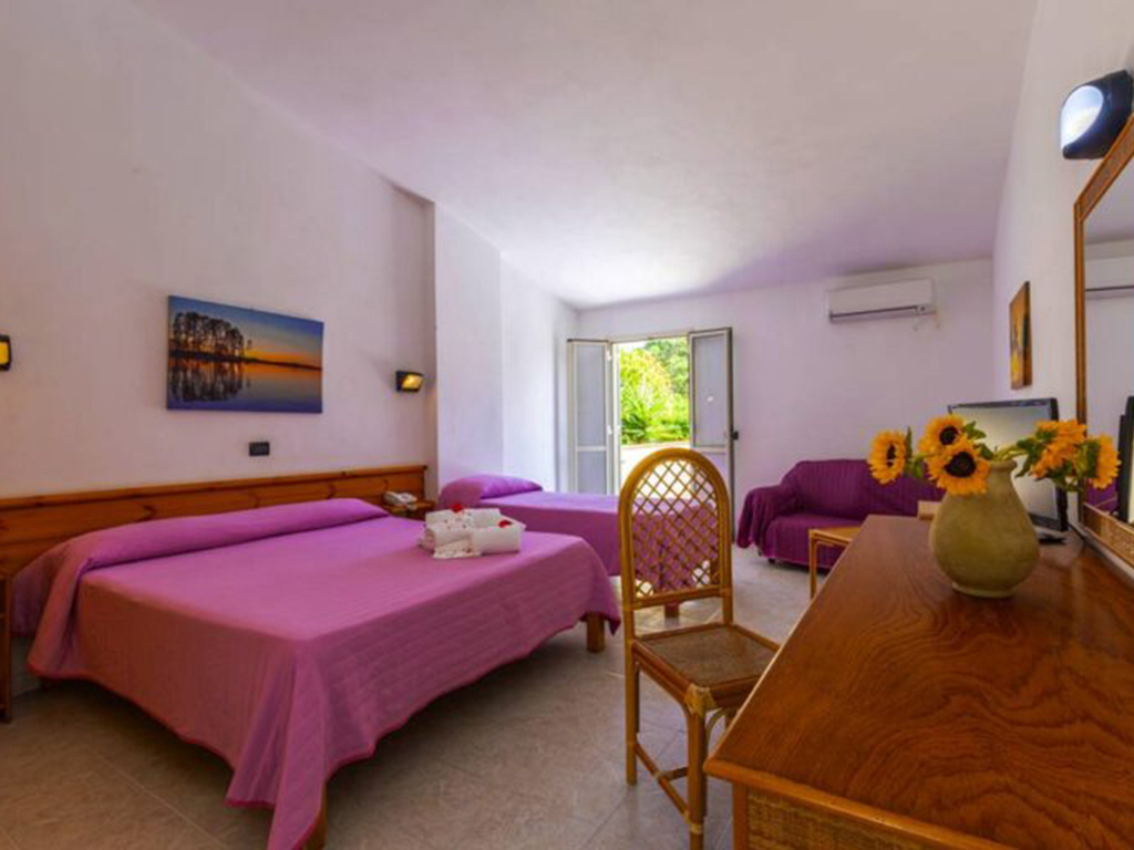 Standard, 117 camere, quasi tutte al piano terra con patio attrezzato da 2 e 3 posti letto, al 1° piano con terrazzo attrezzato quelle da 4 posti letto, con letto a castello o letti piani, (5° letto su richiesta). Tutte le camere sono dotate di aria condizionata, servizi privati, TV, frigobar, asciugacapelli, cassaforte.