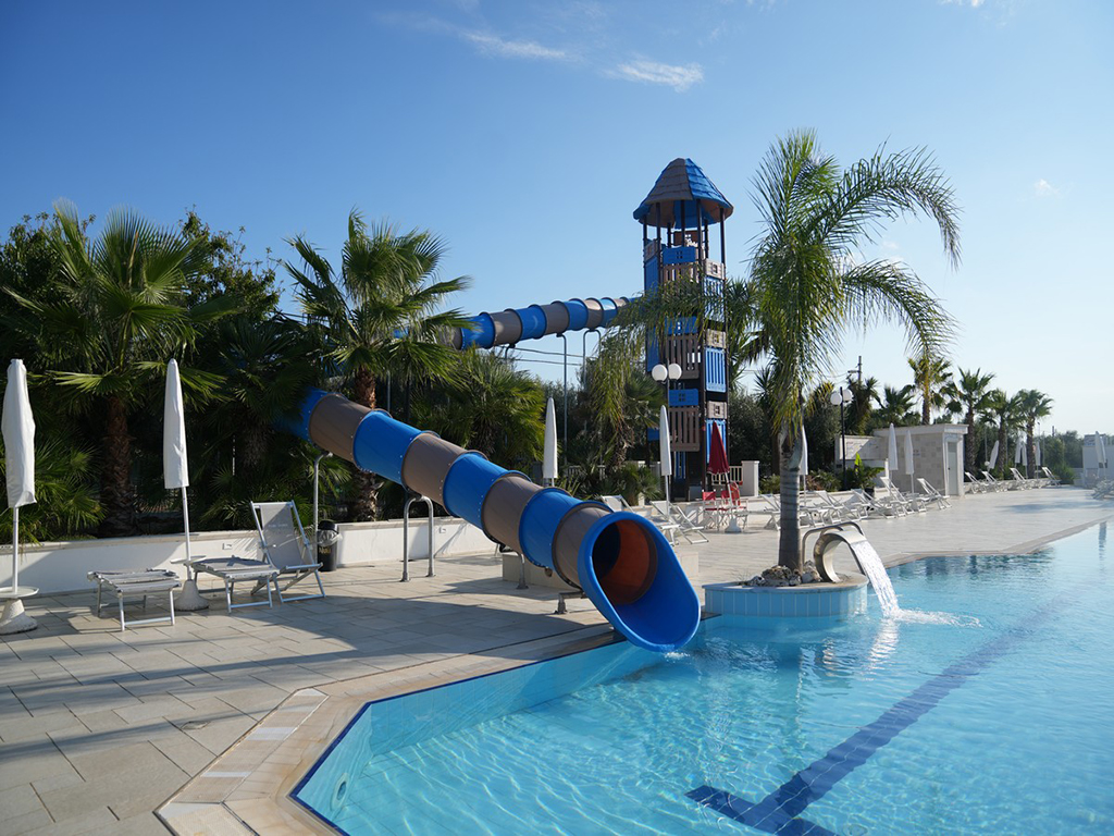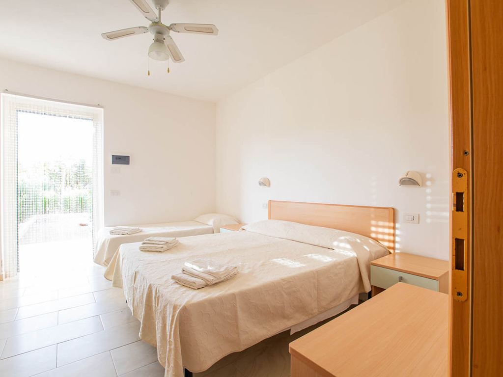 Con un'ambientazione che richiama il fascino di un autentico borgo, la struttura è caratterizzata da ampi viali ornati da ulivi e offre ampi spazi comuni e un'area sportiva attrezzata, in un'atmosfera semplice e informale. La struttura dispone di diversi appartamenti, tutti dotati di aria condizionata, angolo cottura, televisione e minibar. Sono disponibili nelle seguenti tipologie: Trilocale primo piano (da 2 a 4 posti letto): con una superficie di 70 mq, si trova al primo piano e dispone di soggiorno, camera con due lettini, camera matrimoniale e servizi privati. Trilocale piano terra con giardino (da 2 a 4 posti letto): con una superficie di 70 mq, si trova a piano terra e dispone di giardino, camera con due lettini, camera matrimoniale e servizi privati. Non è possibile aggiungere ulteriori infant oltre l'occupazione massima.