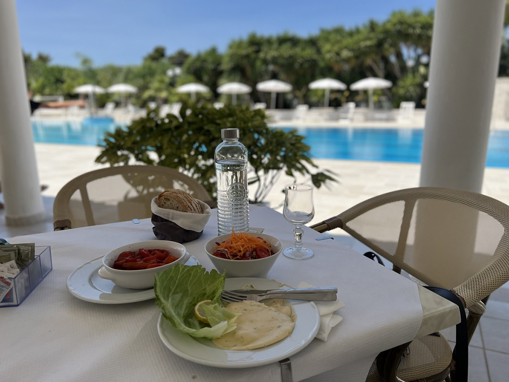 RISTORAZIONE: Cucina regionale e nazionale con ampio uso di prodotti freschi e a km 0. Colazione continentale 07:30-09:30 (chi non riesce a fare colazione al ristorante possibilità senza supplemento di usufruirne al bar in piscina). Pranzo servito al tavolo 13:00-14:30, Cena servita al tavolo 20:00-21:30, inclusa 1 /2 litro di acqua a persona ai pasti, altre bevande escluse. Il soggiorno inizia con la cena del giorno di arrivo e termina con la colazione del giorno di uscita. Per gli Ospiti con intolleranze alimentari prima fornitura di alimenti di base, su richiesta con supplemento da pagare in loco di Euro 15 al giorno. Non garantita la non contaminazione. Da segnalare in fase di prenotazione.