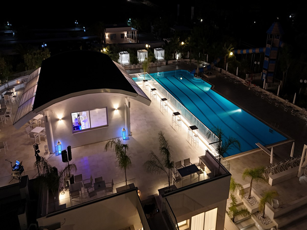 SERVIZI: La struttura dispone di reception, bar all’aperto, ristorante climatizzato, sala TV, parco giochi, piscina con zona per bambini, animazione e miniclub, campo polivalente da tennis /calcetto, navetta da e per la spiaggia, collegamento Wi-Fi nelle zone comuni, parcheggio interno coperto non custodito fino ad esaurimento, il villaggio si compone di vari edifici a schiera su 1 o 2 piani immersi nel verde e da una zona principale dove sono situati tutti i servizi e le attrezzature sportive. Lo staff di animazione propone intrattenimento diurno e serale per adulti e bambini, spettacoli e cabaret, tornei sportivi, corsi collettivi e tante altre attività ludico ricreative. Per i più piccoli, dai 3 ai 10 anni, Mini Club dedicato ad orari prestabiliti. Navetta da/per la spiaggia con i seguenti orari: mattino alle 9, 10.30, 11.45 e 12:30, il pomeriggio alle 15:30, 16.30, 17:30 e 18:30.